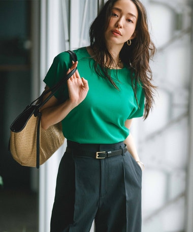 暑さが気になるこれからの季節、シャリっとした素材で清涼感あふれるニットはワードローブに取り入れたい理想のアイテム。