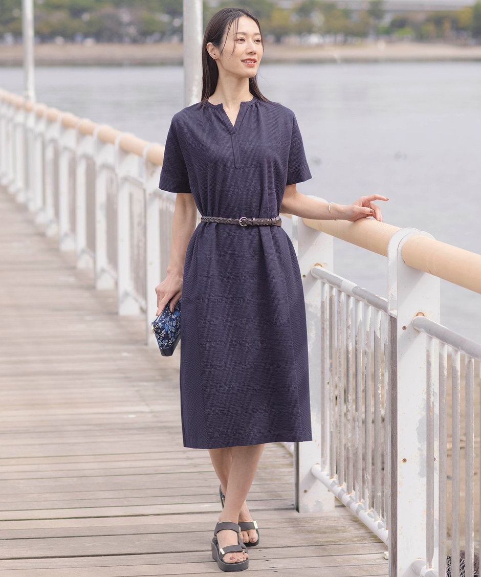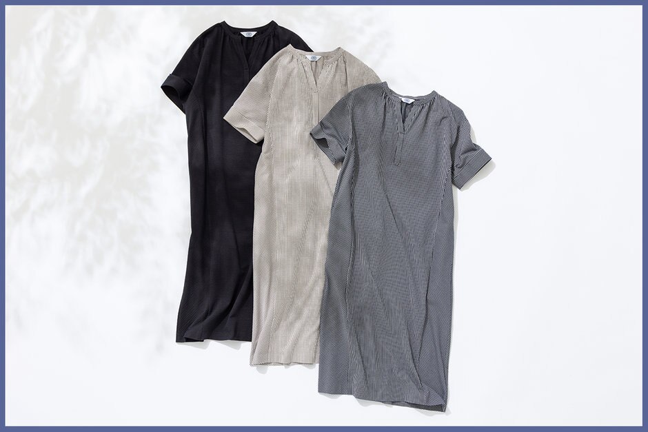 03. Aラインシルエットでスッキリ見えを叶える、清涼感のある快適な着心地のワンピース