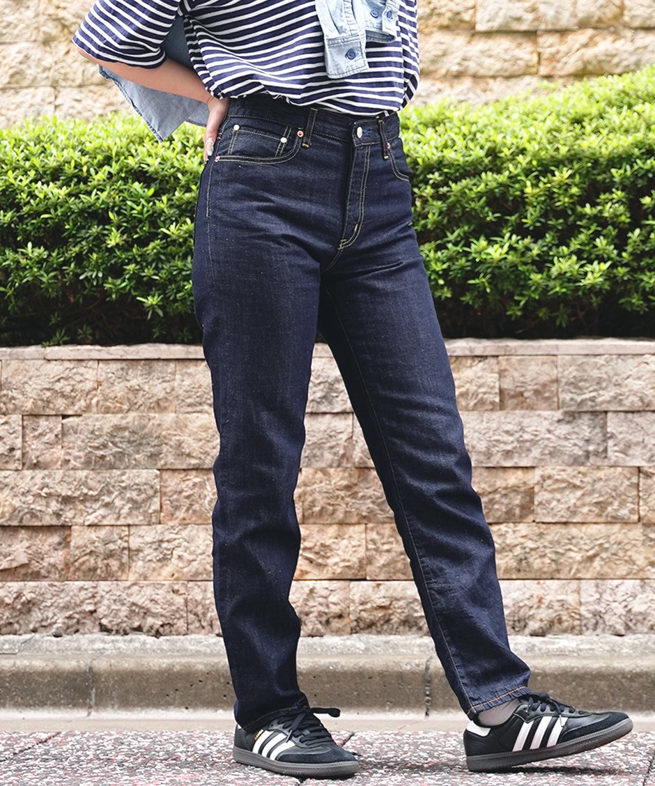 ほんのりテーパードが効いたストレートシルエットのリネン混デニム。