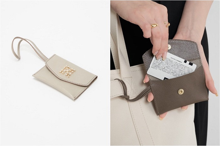 取り外し可能なレザーポーチにはICカードが入るサイズ。