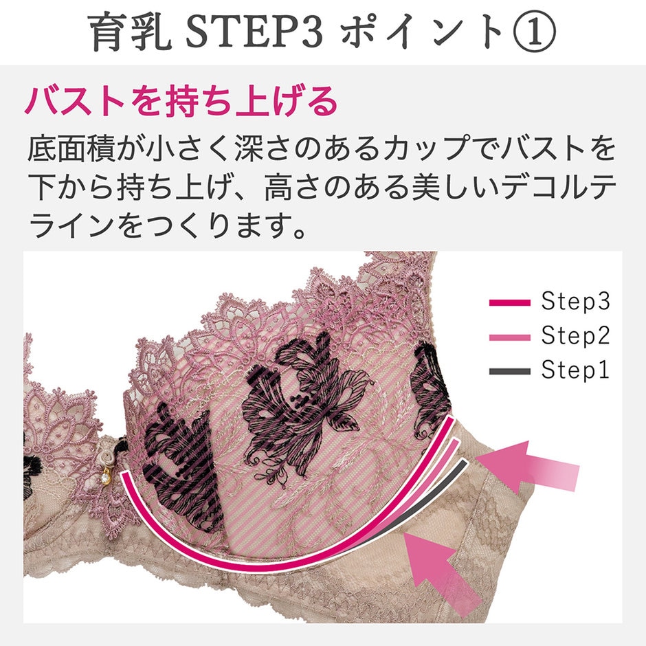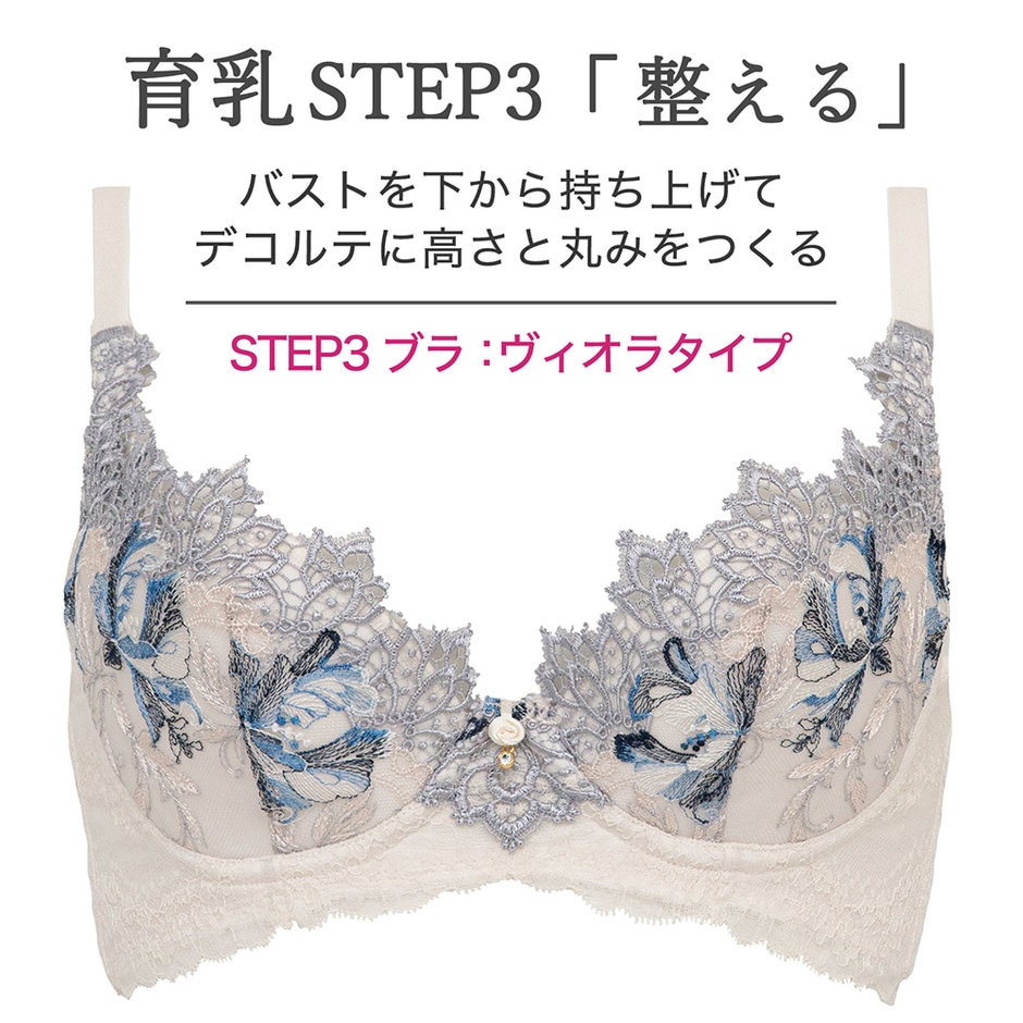 ブラデリスの人気ワイヤー補整シリーズ「3STEP 育乳補整ブラ」は美胸を育てる"3つのSTEP"で、土台から美しいバストをつくります。