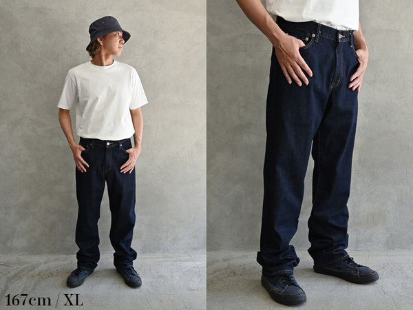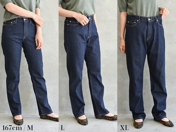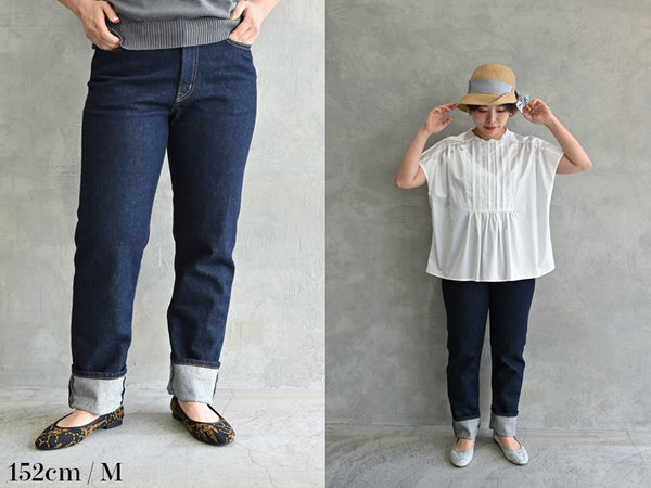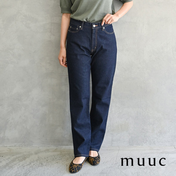 デニム産地である、岡山県・広島県のメーカーと、本格的デニムパンツを制作しました。11オンス(ミドルオンス)のデニム生地を使用しています。ストレッチを効かせた非常に軽いデニムパンツに仕上げました。さらにワンウォッシュすることで、柔らかさも出しています。5ポケット、前開きファスナー仕様です。クリーンな印象のホワイトのウエストパッチがアクセントです。サイズ展開が広くストレッチも効いていますので、様々な体型の方に着ていただけます。幅広いスタイリングに適した、流行り廃れが無い不変的なデザインなので、muucの他のアイテムとも合わせやすく、長くお使いいただけます。