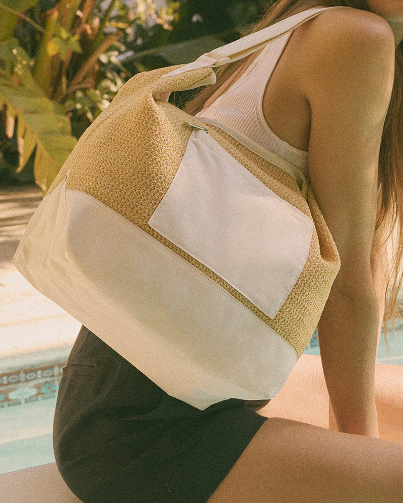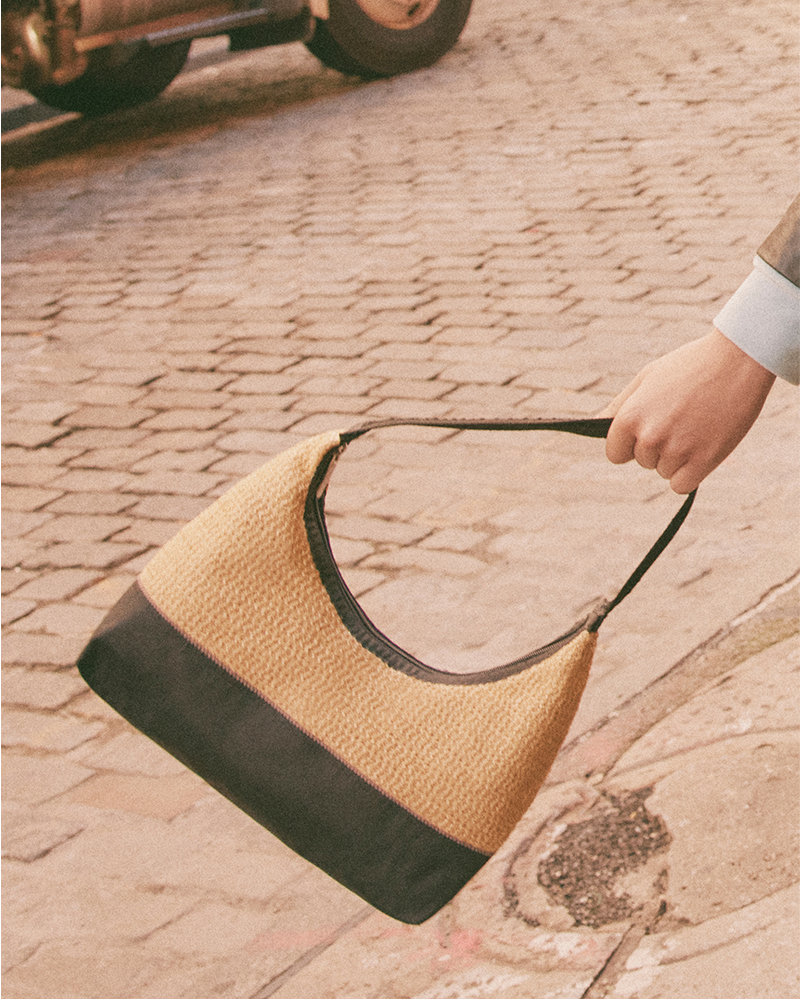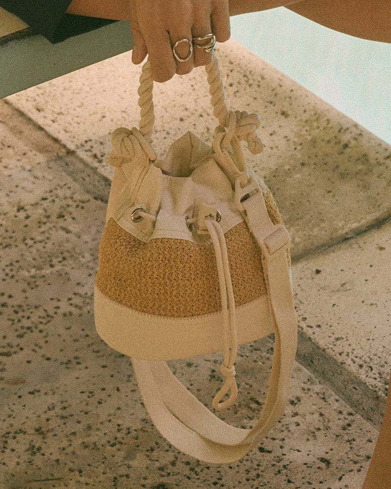 ラフィア調素材とリップストップナイロンの組み合わせが爽やかな「ラフィアコレクション」に、新型のミニバケットとラージショルダーバッグが登場。
