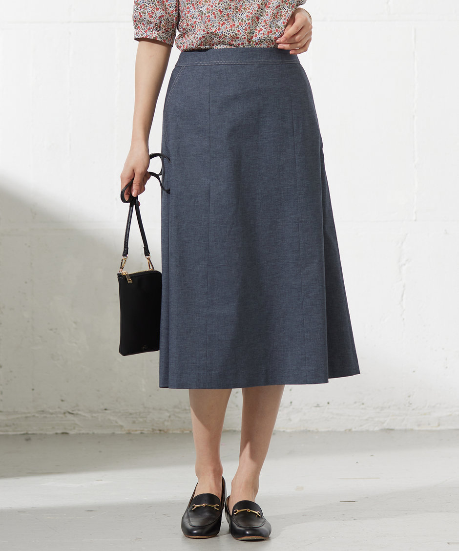 08.夏らしい軽やかなシャンブレーライクなフレアスカート