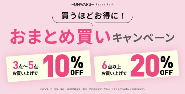 オンワード・リユースパークの商品をお得にお買い求めいただける「おまとめ買いキャンペーン」を是非ご利用ください。