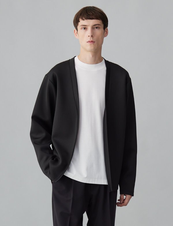 ジャケットとカジュアルなカーディガンの中間を狙った”きちんと見え”の羽織り。程よいサイズ感が、インナーのサイズを悩むことなく着用出来ます。