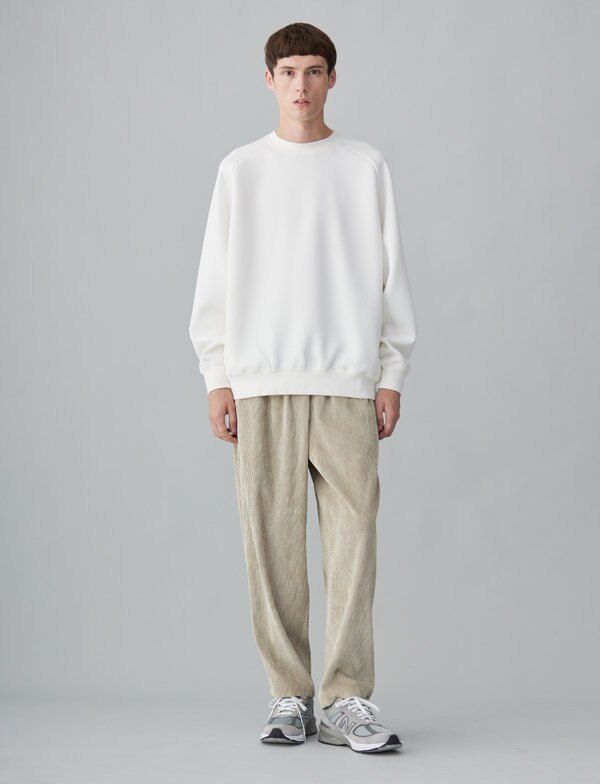 光沢感がある表面なので、スウェット素材でありながらも高見えするところも魅力的なプルオーバー。