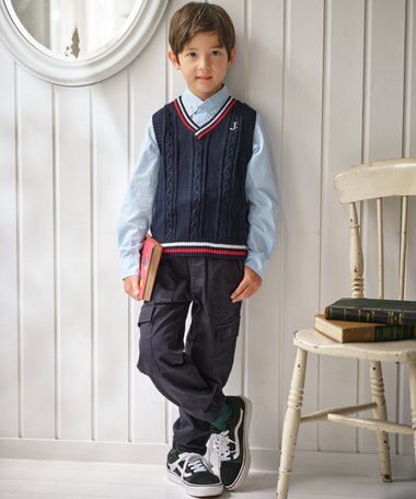 表情豊かなニットベストを主役に、シャツときれいめなボトムスでコーディネート。フォーマルな印象で学校行事やお呼ばれにおすすめ。ニットベストは着合わせるアイテム次第でカジュアルスタイルも楽しめる、この秋おススメのアイテム♪