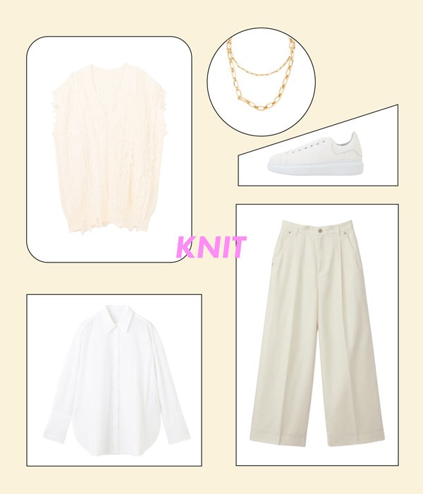 ✓インナーにはホワイトのカットソーを入れることで顔回りの明るさをキープ