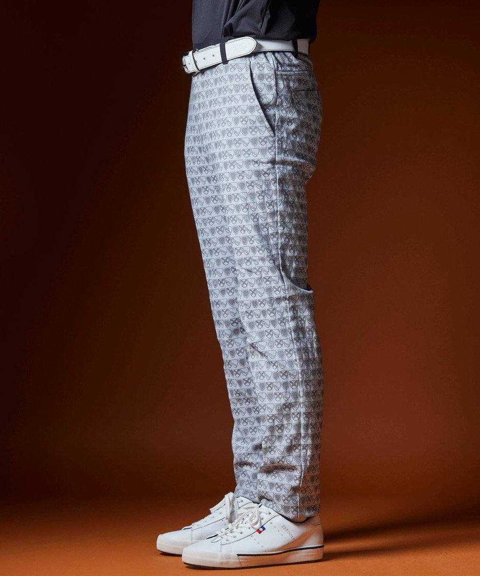 エンブレムを幾何学模様風に配置した、インパクト抜群のジャカードパンツ。