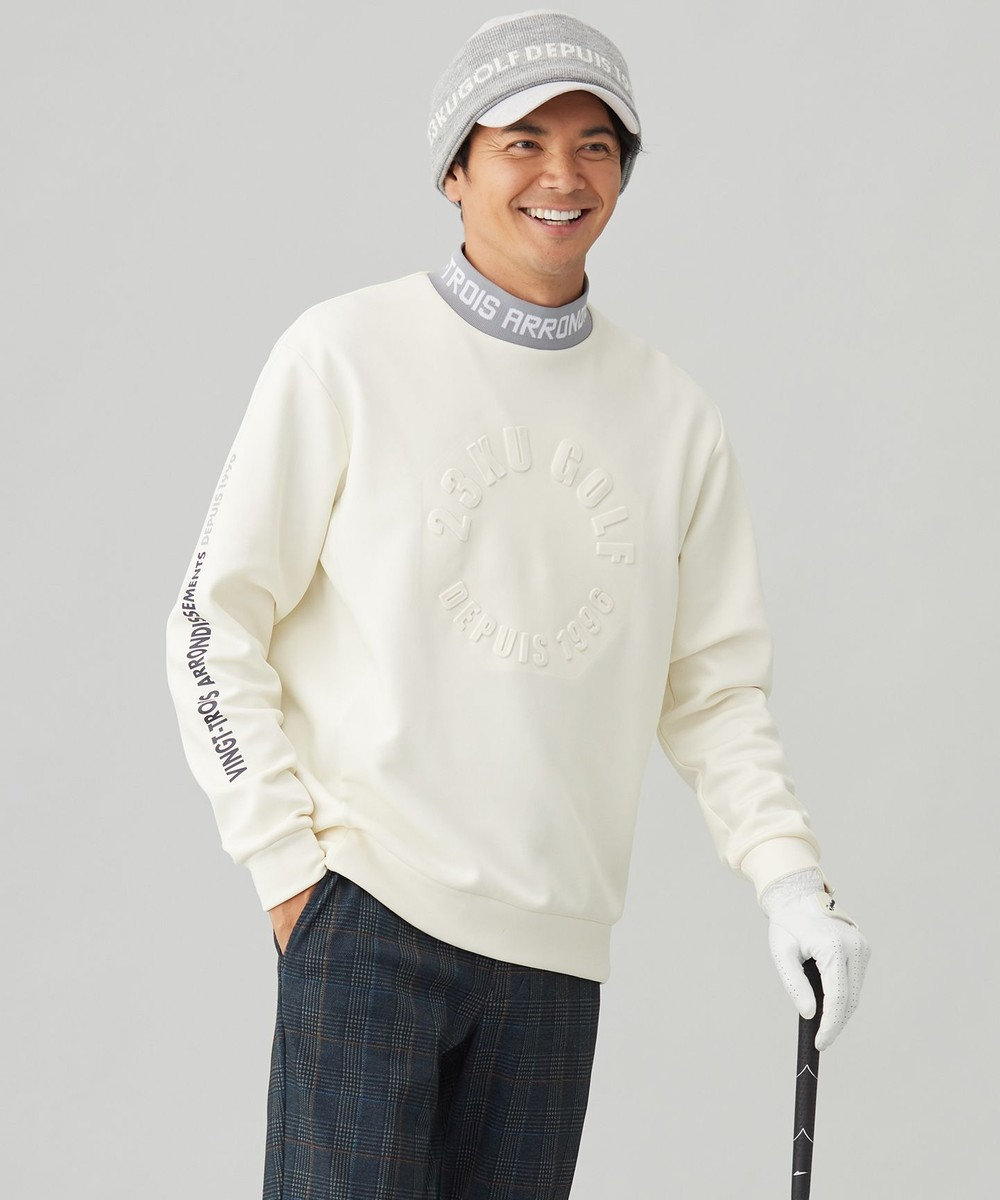 エンボス加工のロゴが、モードな印象のあるモックネックシャツ。