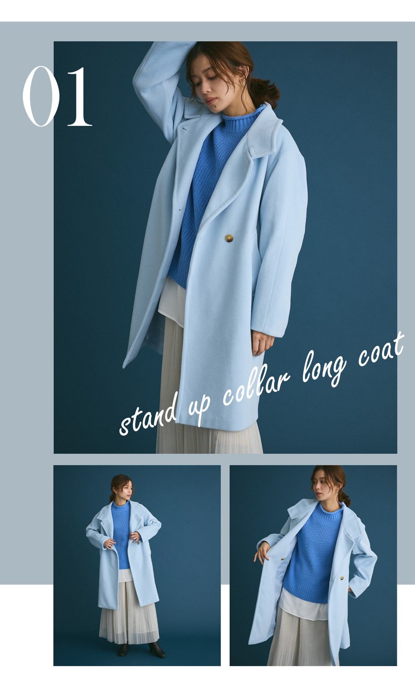 襟を開いてチェスター風で、ボタンを閉めてスタンドカラーでと2通り楽しめるコート。