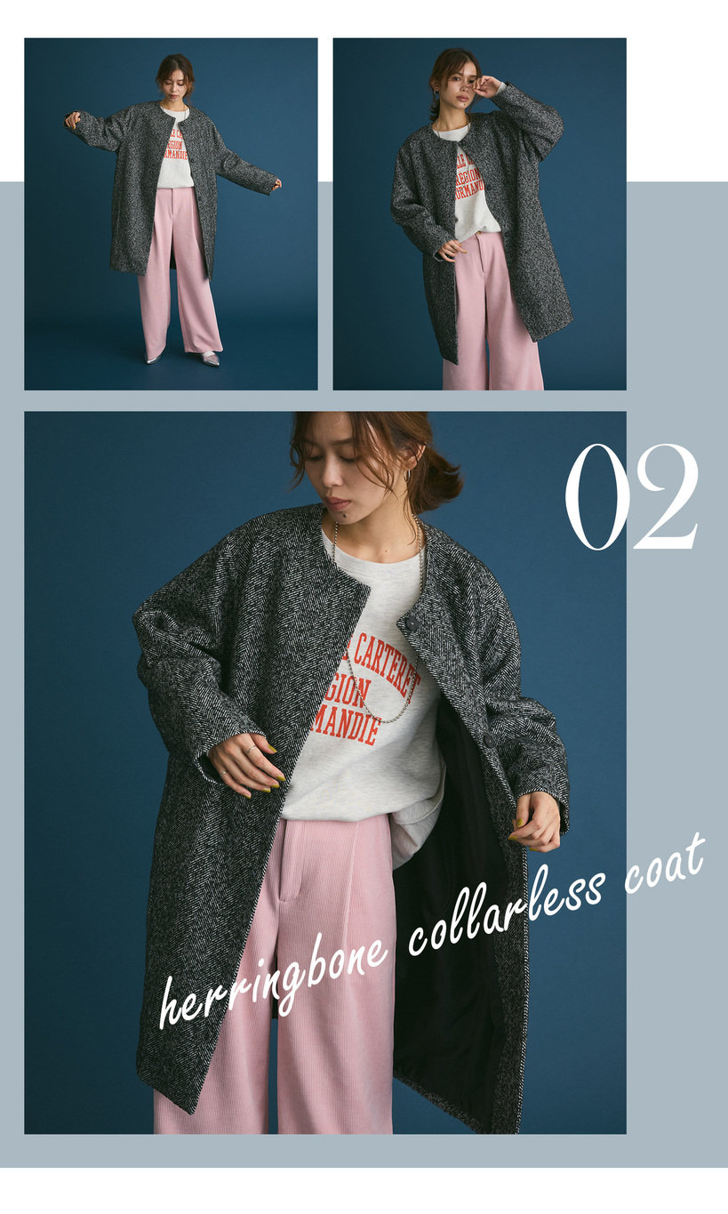 ヘリンボーン柄でシーズンムード高まるデザインコート。
