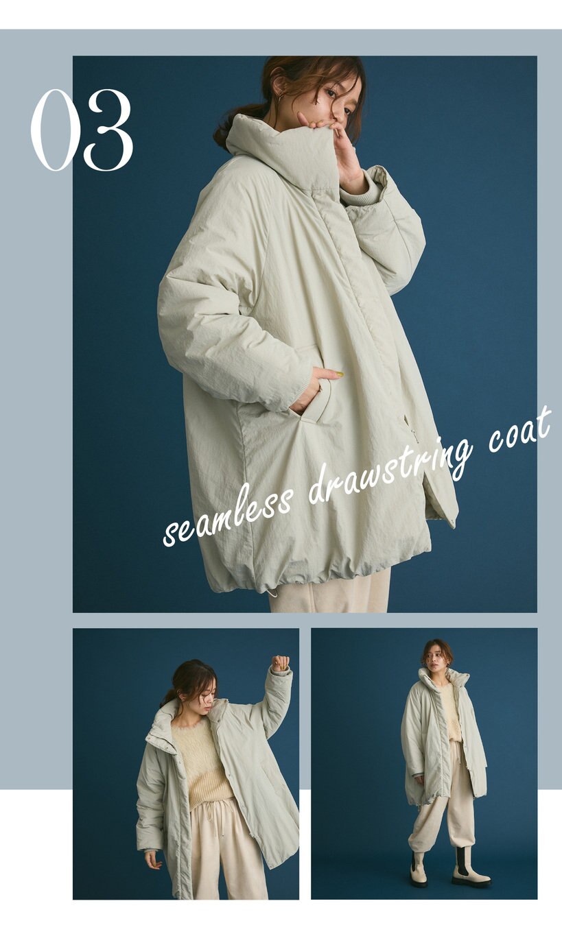 裾ドロストデザインが生み出す丸みのあるシルエットで旬な中綿コート。