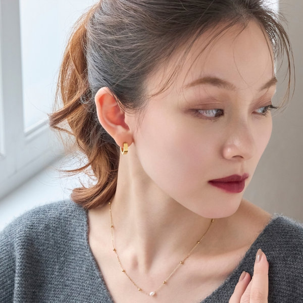 【五角形シルエットが、都会的な印象に仕上げるフープピアス】
