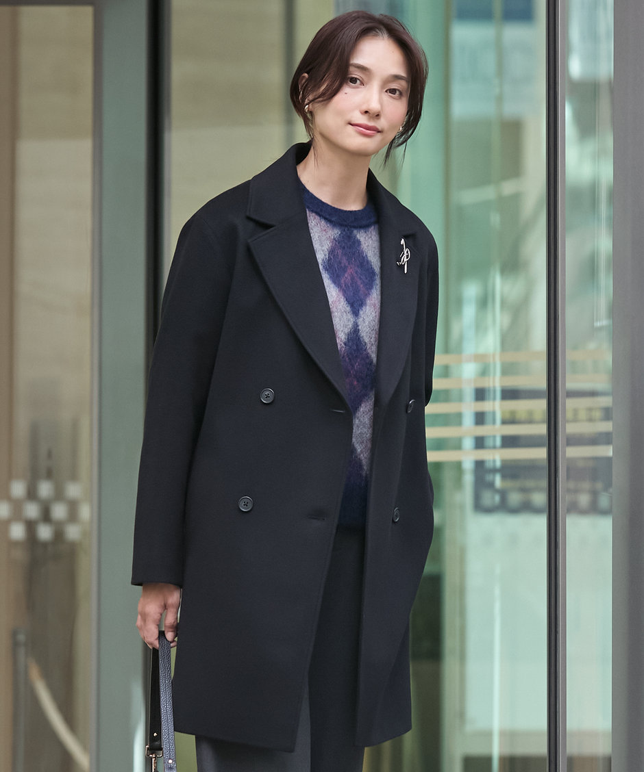 羽織るだけで華やぐ、暖かみのある起毛した表面感が魅力のPコート。シンプルなスタイルにパサッと羽織るだけでサマになります。上品できちんと感があり、飽きのこないデザインで長く愛用いただけるアイテムです。マニッシュな印象のPコートですが、大人の女性らしく着ていただける、おすすめの1着です。