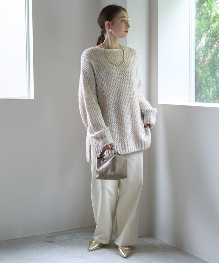 ゆったりとしたニットをメインに、リラクシーなスタイリング。