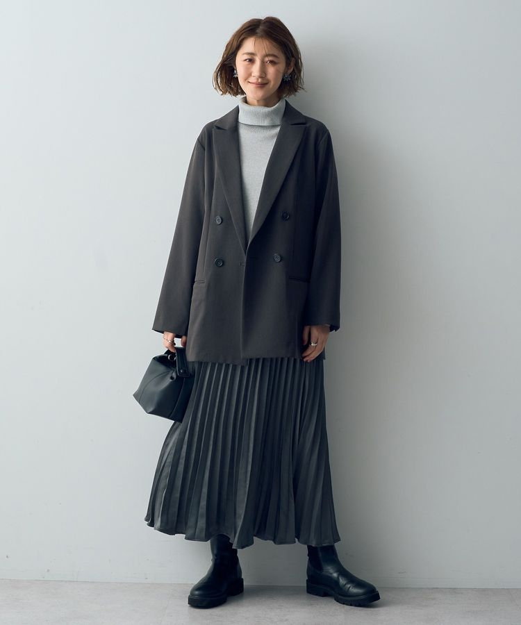 ふっくらと柔らかい、軽い着心地のニットで暖かく仕上げたコーディネートです。