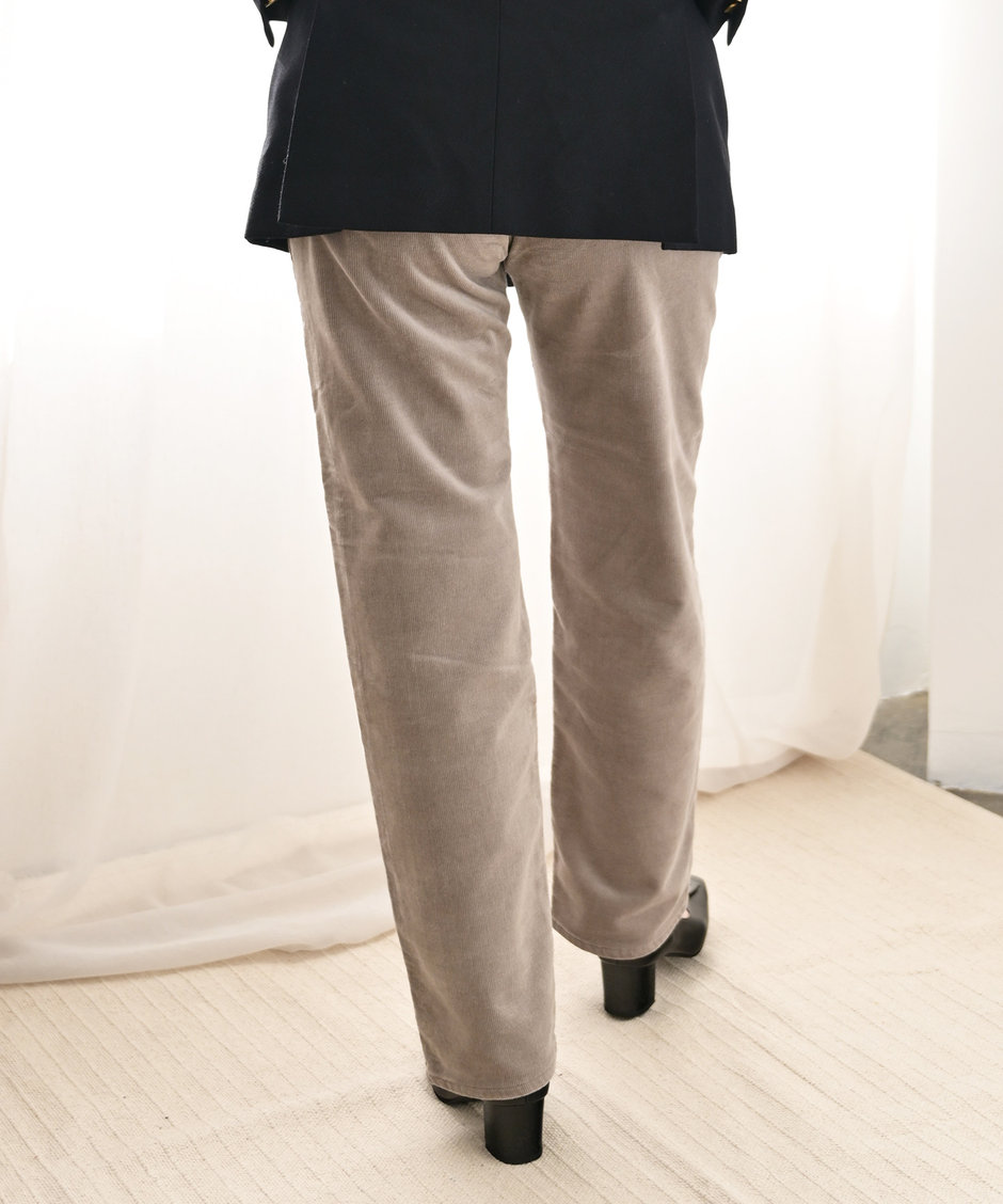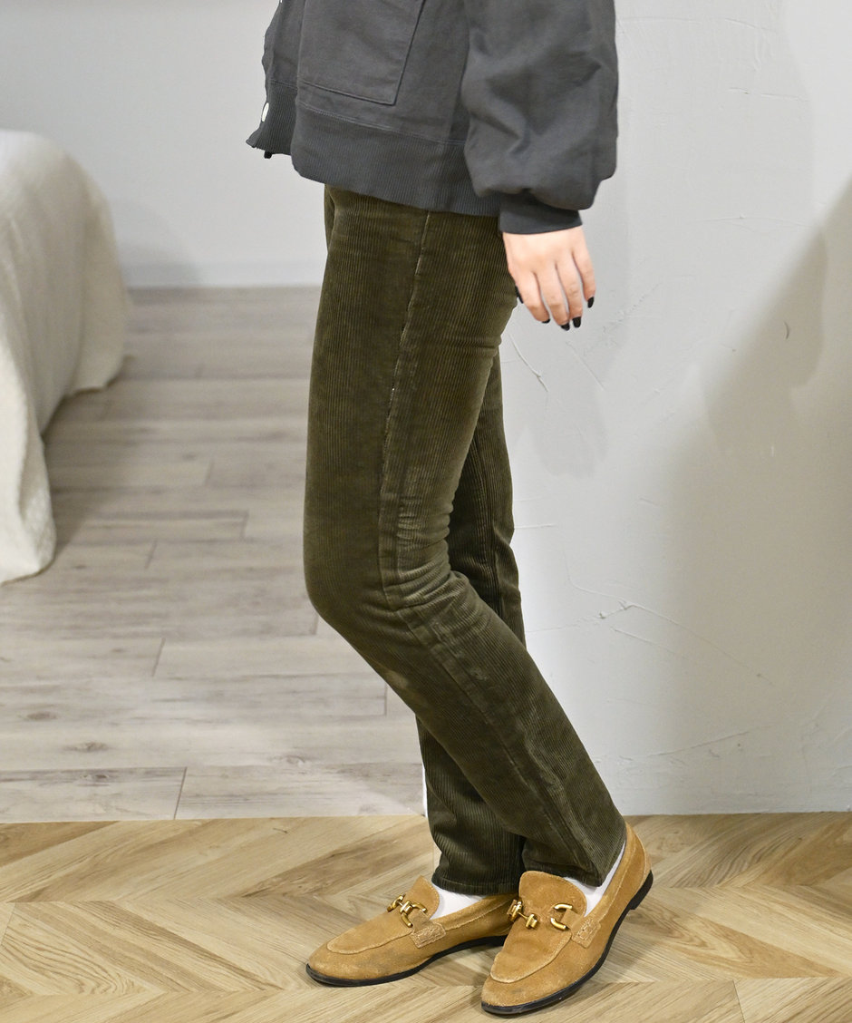 伸縮性の高い裏起毛コーデュロイパンツ。