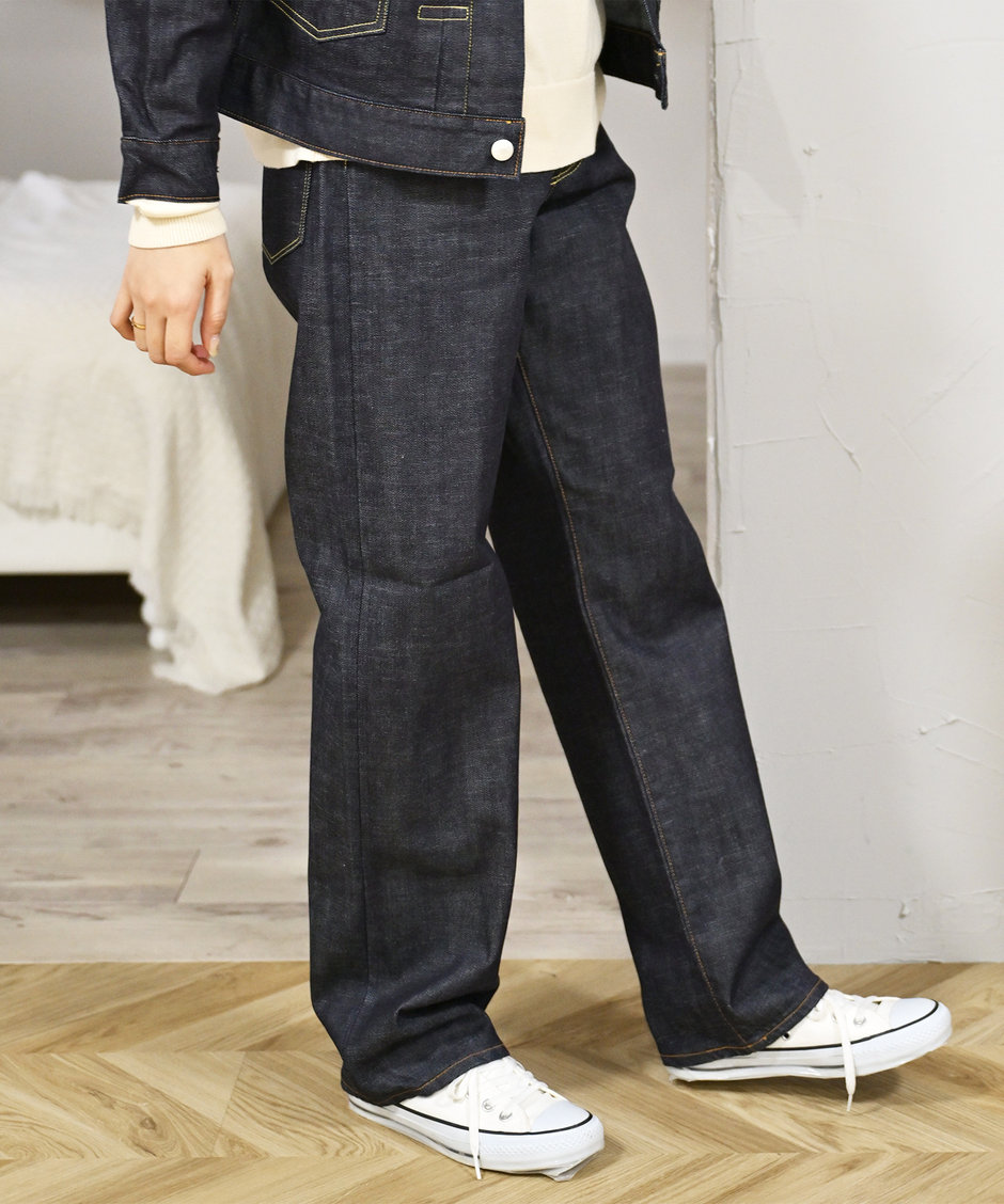 柔らかいコットンを100%使用したバギーシルエットデニム。