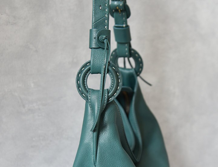 長くどんなシーンでも使いやすいように本体は1枚革でシンプルに仕上げた一方で、細部には職人の手仕事をふんだんに取り入れています。ムースは特に、通常あまり目を留めることがないショルダー部分に注目していただけたらと思います。