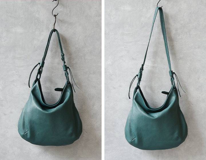 バッグは異なるサイズの2型を、今回ご紹介した新色のブルーグリーンのほか、キャメルとクロ、合わせて3色でご用意しています。キャメルはgentenらしさを感じられる定番の色、クロはナチュラルな装いにはもちろん、モダンな装いにも馴染むため、お好きなファッションと合わせてお楽しみいただけます。