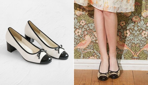 トゥ部分はつま先が見えないブロッキングディテールで、上品に。