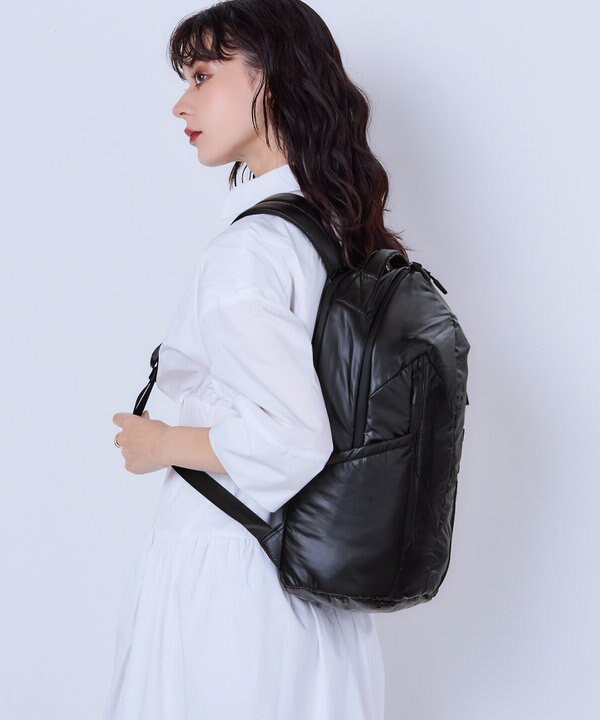 フロントのヘリンボーンの切り替えがアクセントの大容量バックパック。