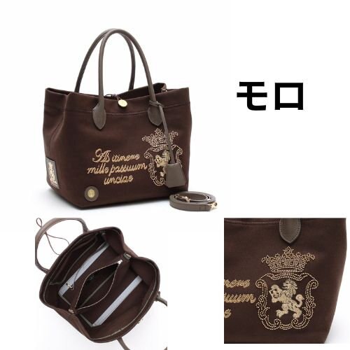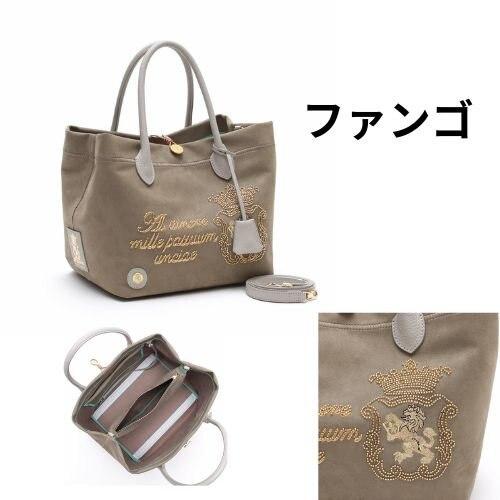 エイジングでアンティークの風合いを楽しめる金ボタン付きのトート。