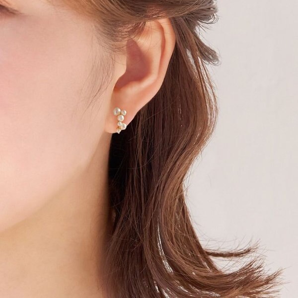 【耳たぶを包むように小粒のパールが艶めくイヤリング】