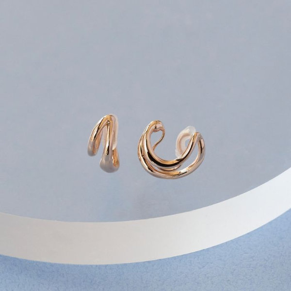 【フープをレイヤードしたようなルックスのニュアンスフープイヤリング】