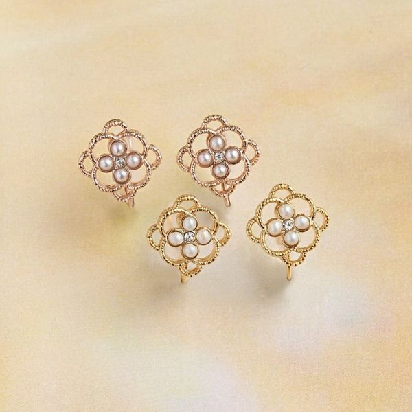 細やかなミル打ち加工を施したモチーフの中央に、お花のようにパールビジューを配したデザイン。
