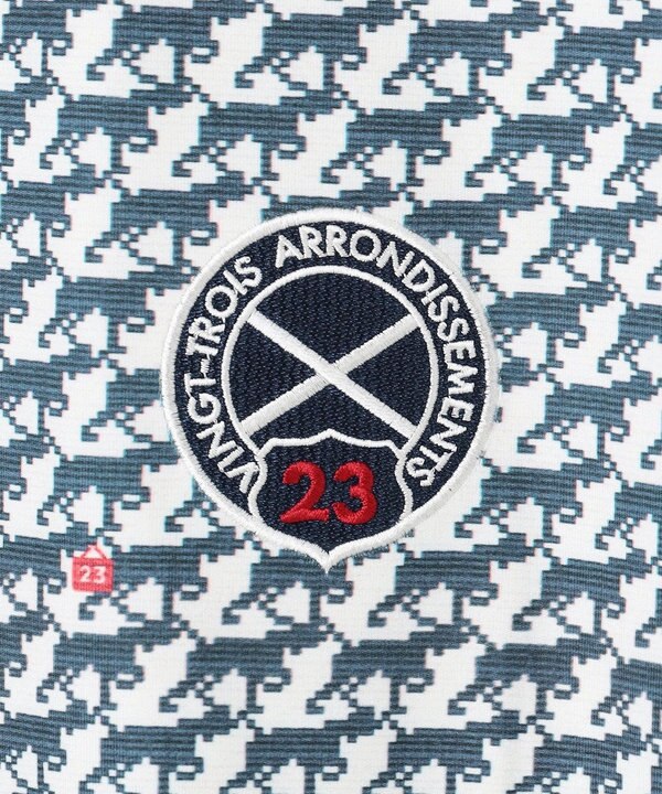 インパクト抜群のハンタードッグ(猟犬)モチーフを、イギリスの伝統柄であるハウンドトゥース柄として表現した
