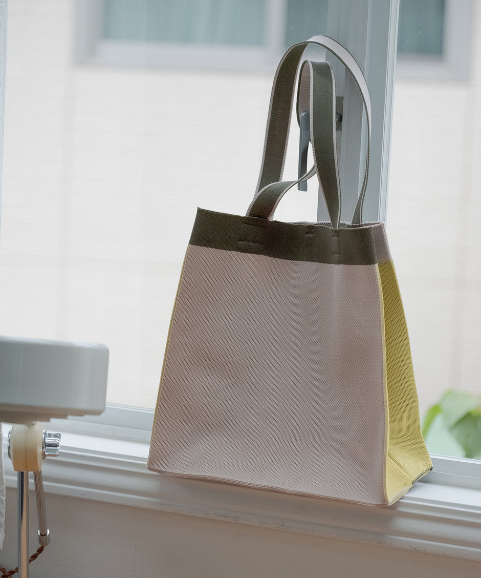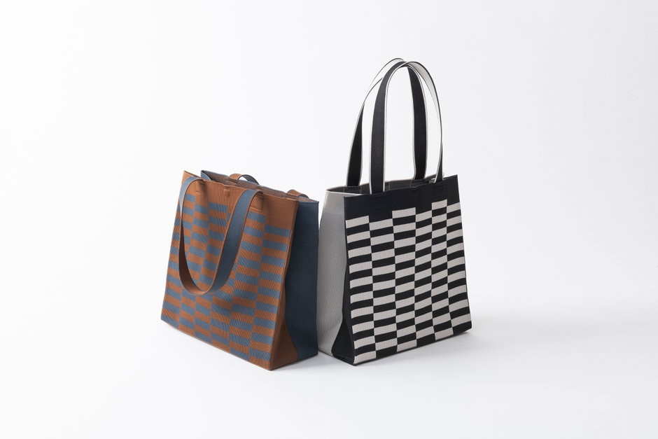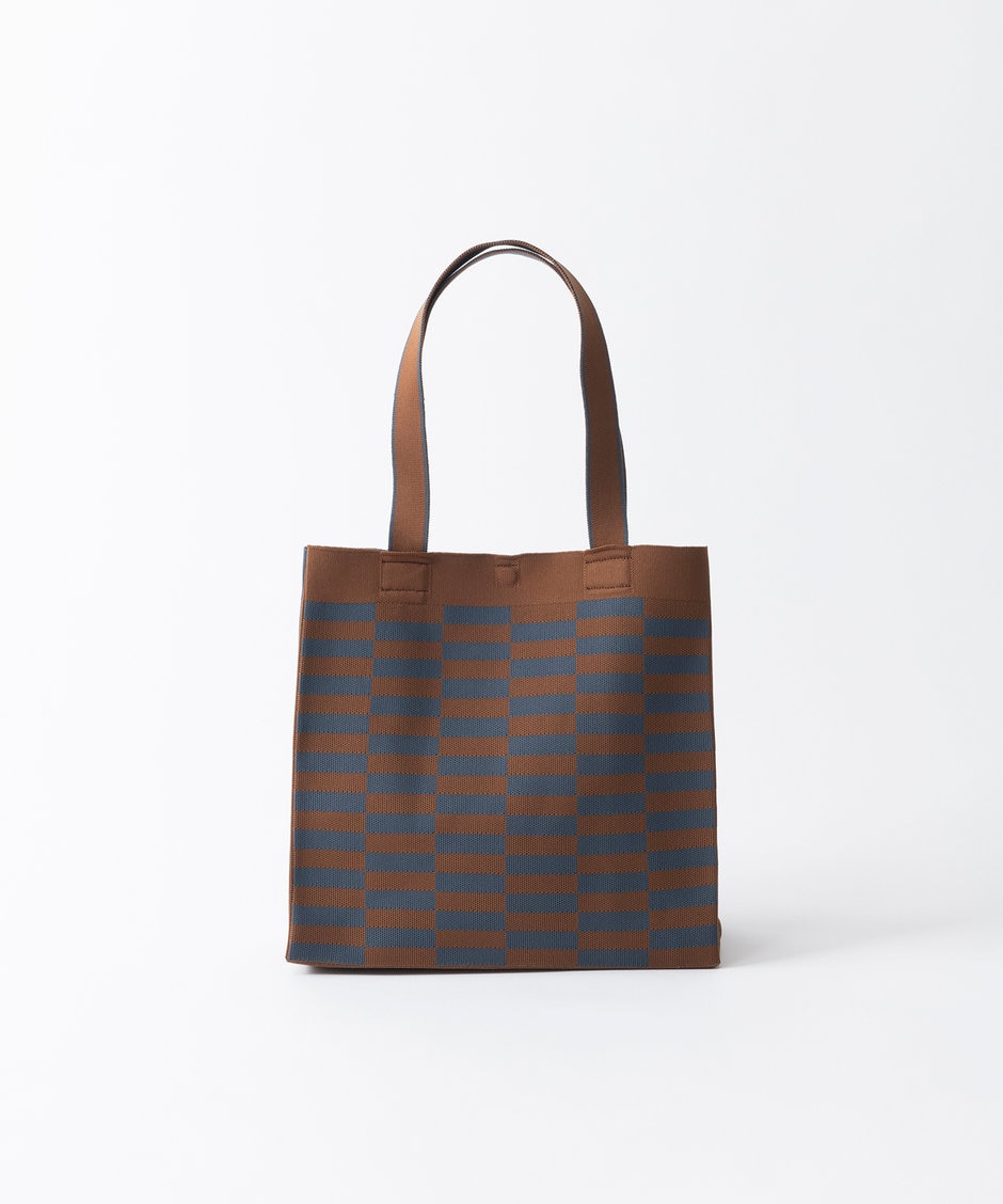 ハリがあり紙袋のようなしっかりとしたニット素材を使用したバッグ、PAPER BAGシリーズの新作です。スマートなチェックストライプの柄が目を惹くバッグ。