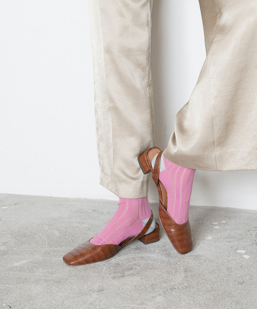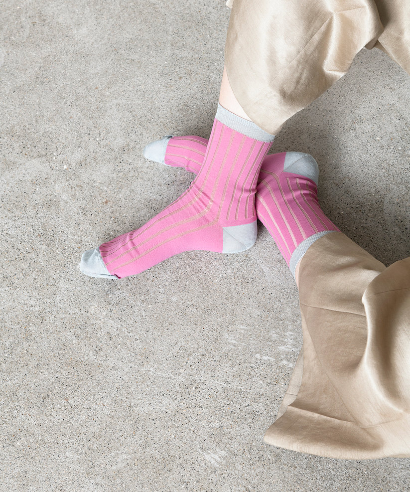 春夏にぴったりな爽やかな配色のシースルーリブソックス。リブ組織で伸縮性があり、履き心地も◎