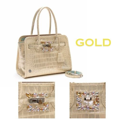 カーフレザーにクロコダイル型押しを施し、ラミネートの箔仕上げをした、艶やかなマテリアルです。