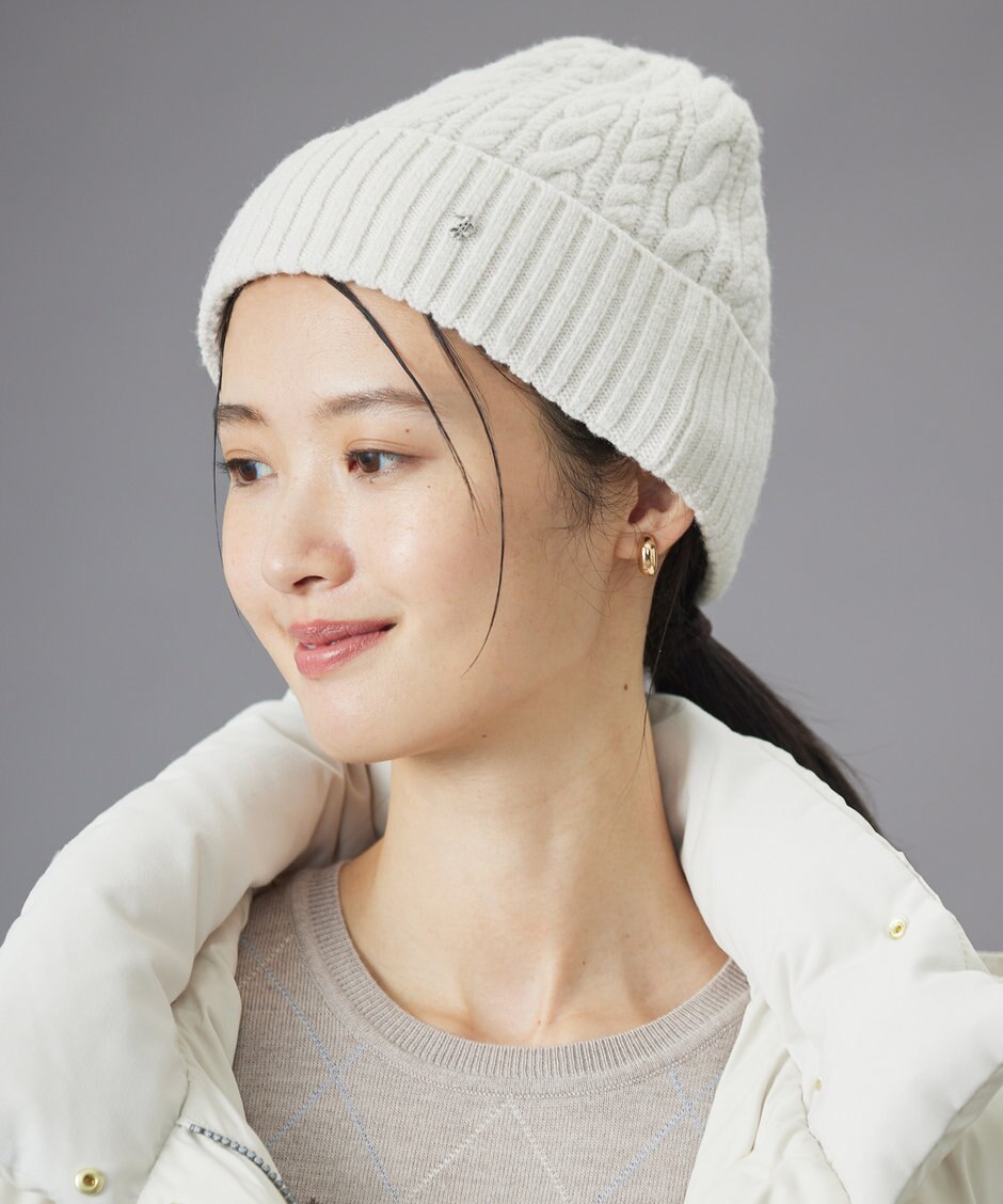 03. 暖かさとおしゃれを兼ね備えた、ベーシックなアラン編み柄ニットキャップ