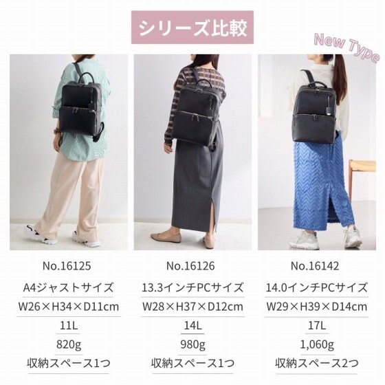収納可能なPCサイズも13.3インチ→14.0インチになり、より通勤・通学にマッチしたアイテムになりました!