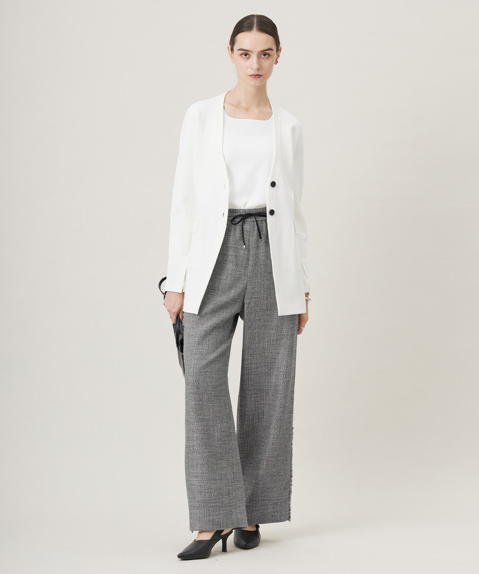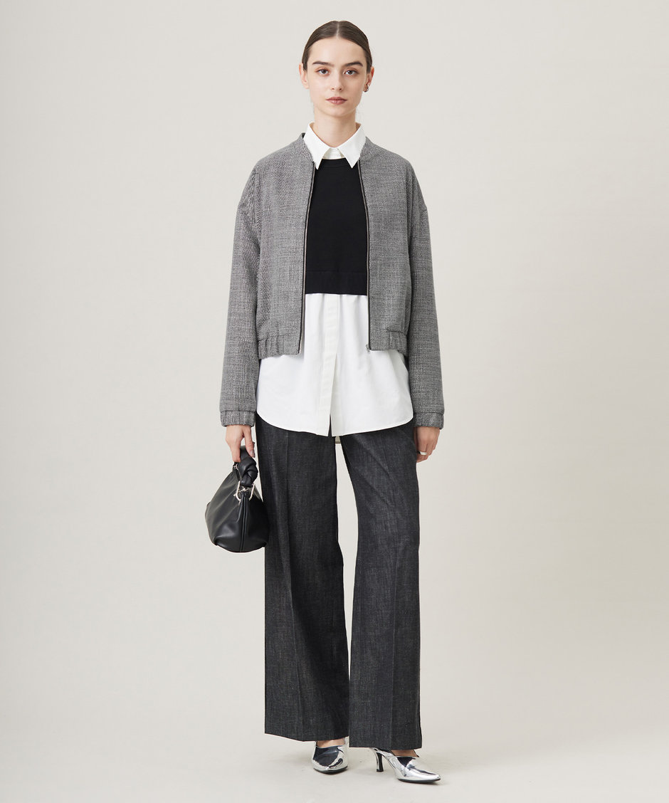 羽織るだけでモノトーンコーデがクラスアップする、ツイード素材のブルゾン