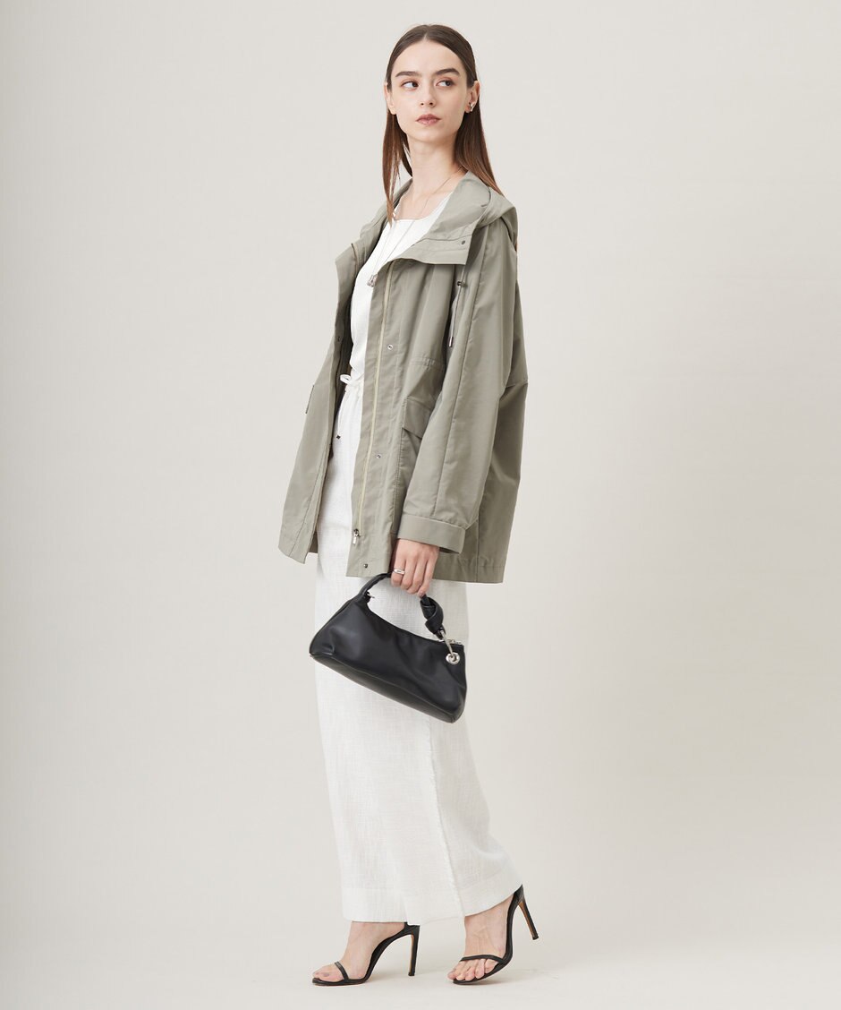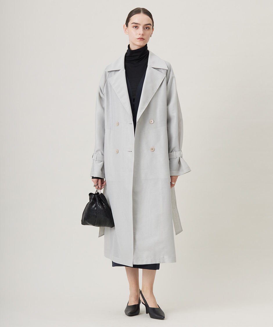 シアー素材で仕立てたトレンチコートは、洗練された雰囲気と軽い着心地が魅力