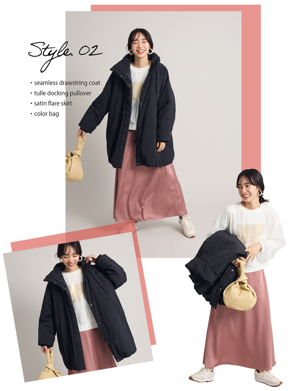 しっかり防寒できるアウターには、軽やか素材のアイテムを取り入れるのが◎