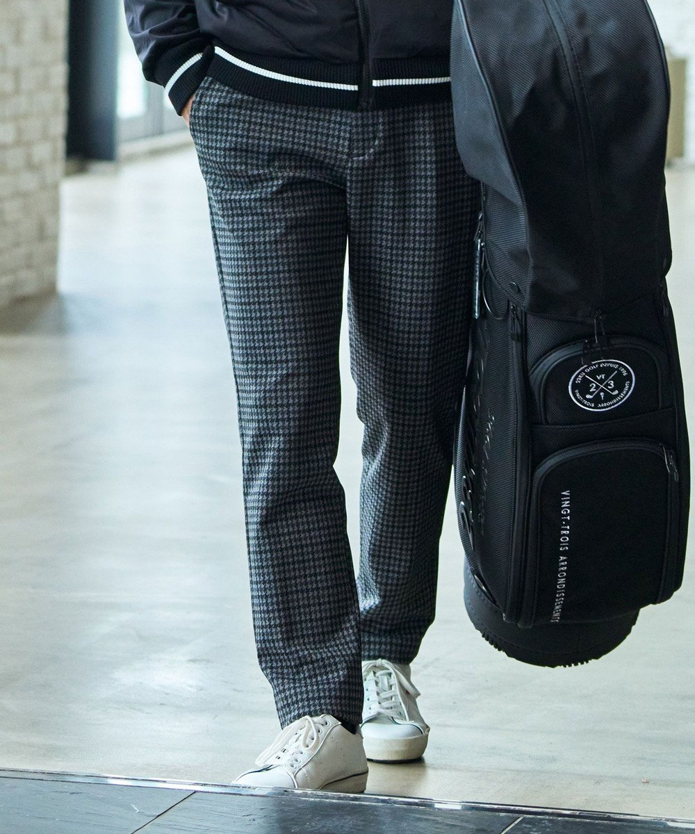スコットランドテイストなガンクラブチェック柄がプリントされたパンツ。すっきりとしたシルエットなので、コーディネートをクラシカルにまとめてくれます。やわらかなジャージー素材でストレッチ性も抜群なので、スイングにも柔軟に対応できます。