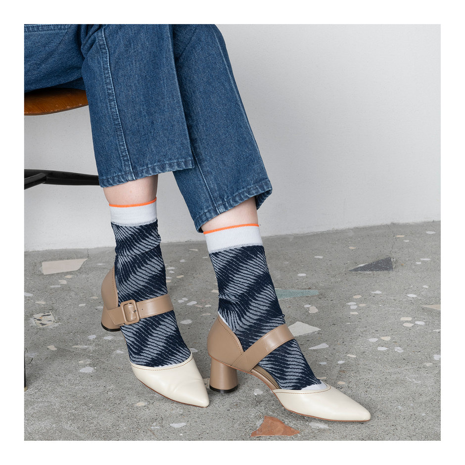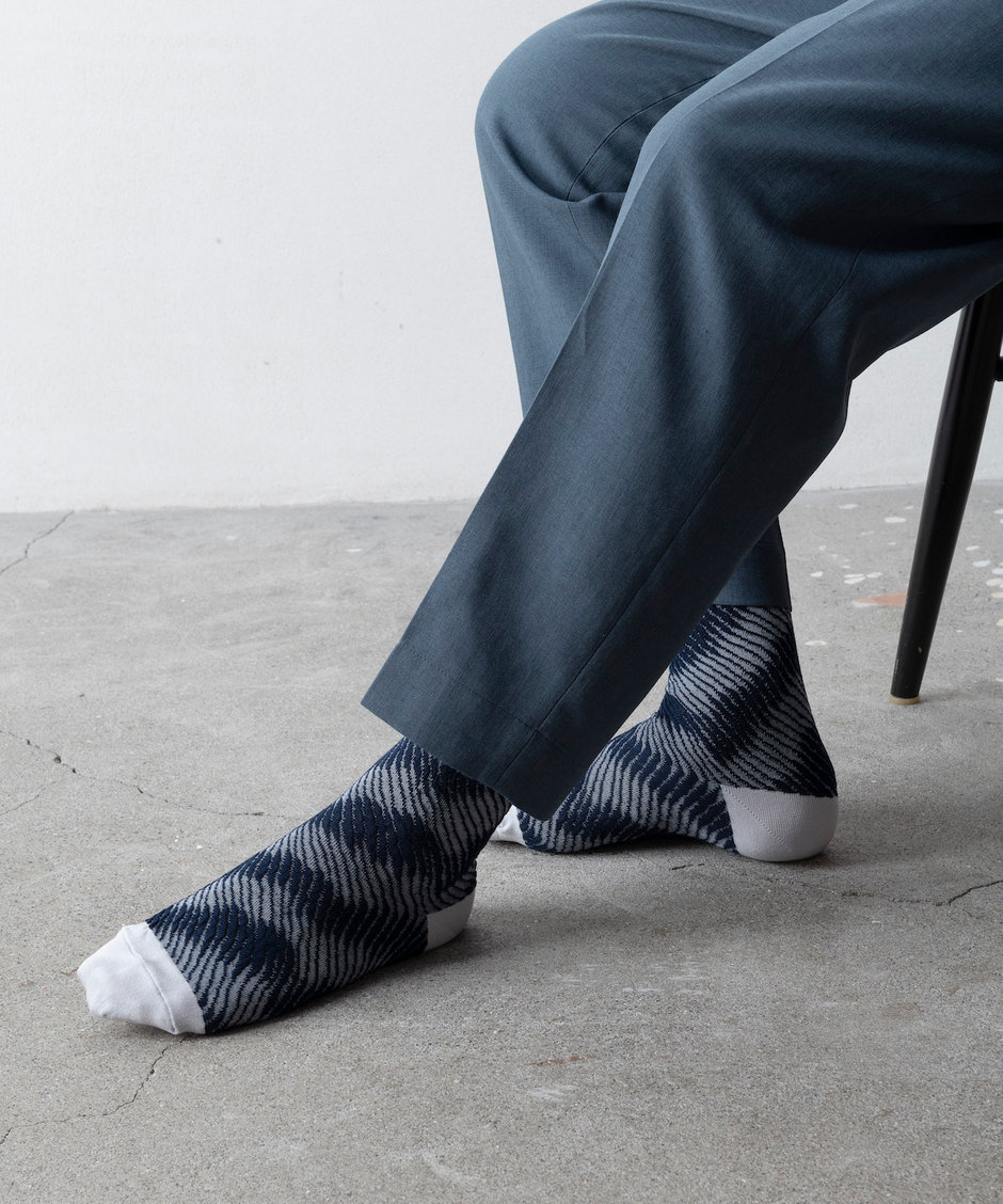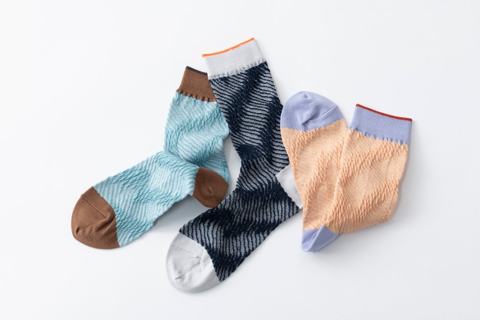 男性でも女性でも足のサイズに合わせた凹凸感が楽しめるバンピーソックスシリーズから、奥行きのあるウェーブ柄のシアーソックスのご紹介です。