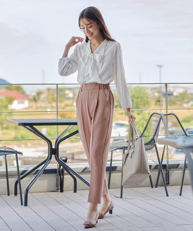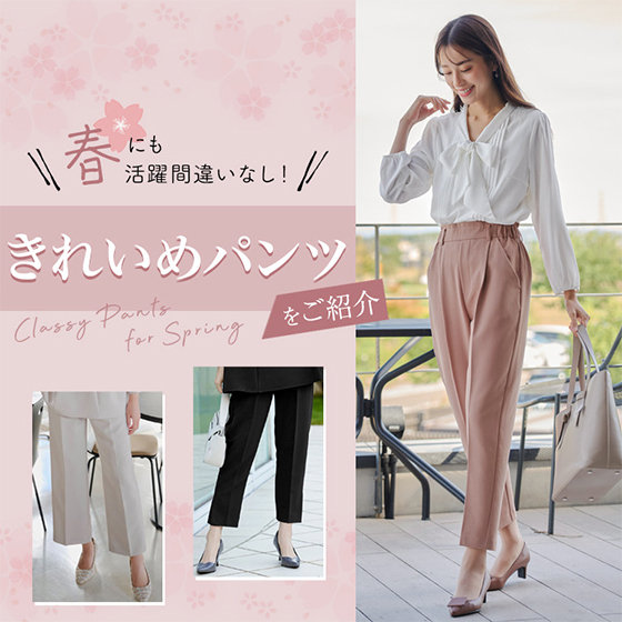 華やかなときめきカラーで季節感を演出ウエストゴムで快適なのにきちんと感をプラスしてくれる