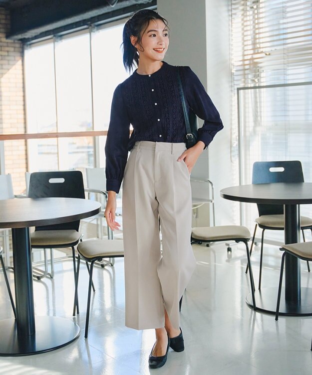 【ストレッチジョーゼット】 スリットテーパードパンツ
