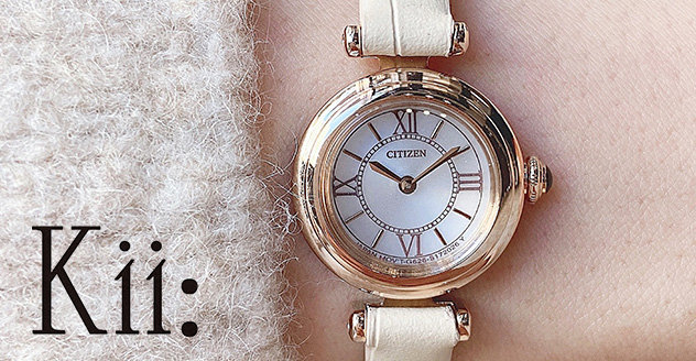 アンティークテイストで可愛らしいサイズのKii:。華奢で可愛らしい腕時計を纏えば、気持ちも華やかになりそうです。