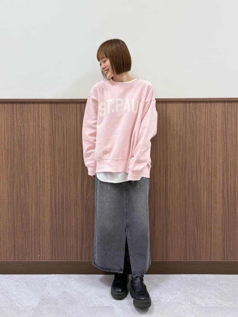 身頃はシンプルなスウェット生地なので、着まわしやすいアイテムです♪