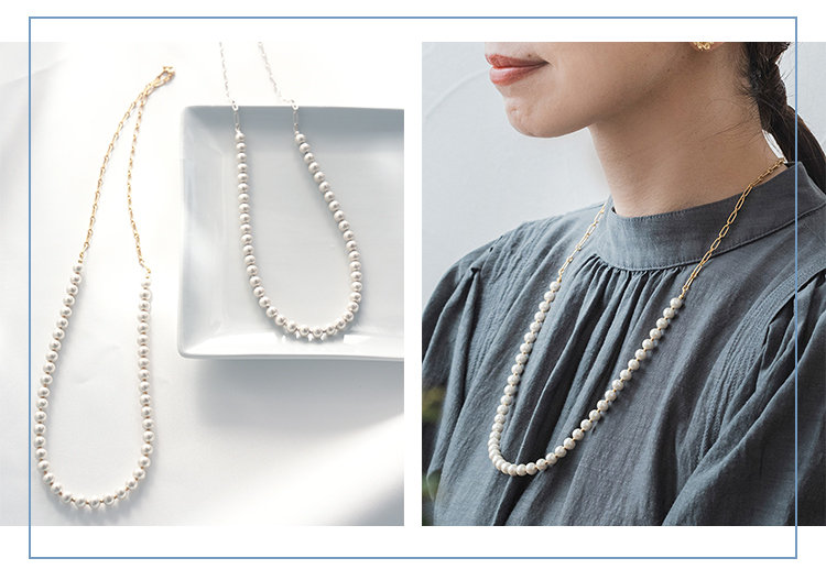 さまざまな表情のパールを使ったアクセサリーは春の装いに...