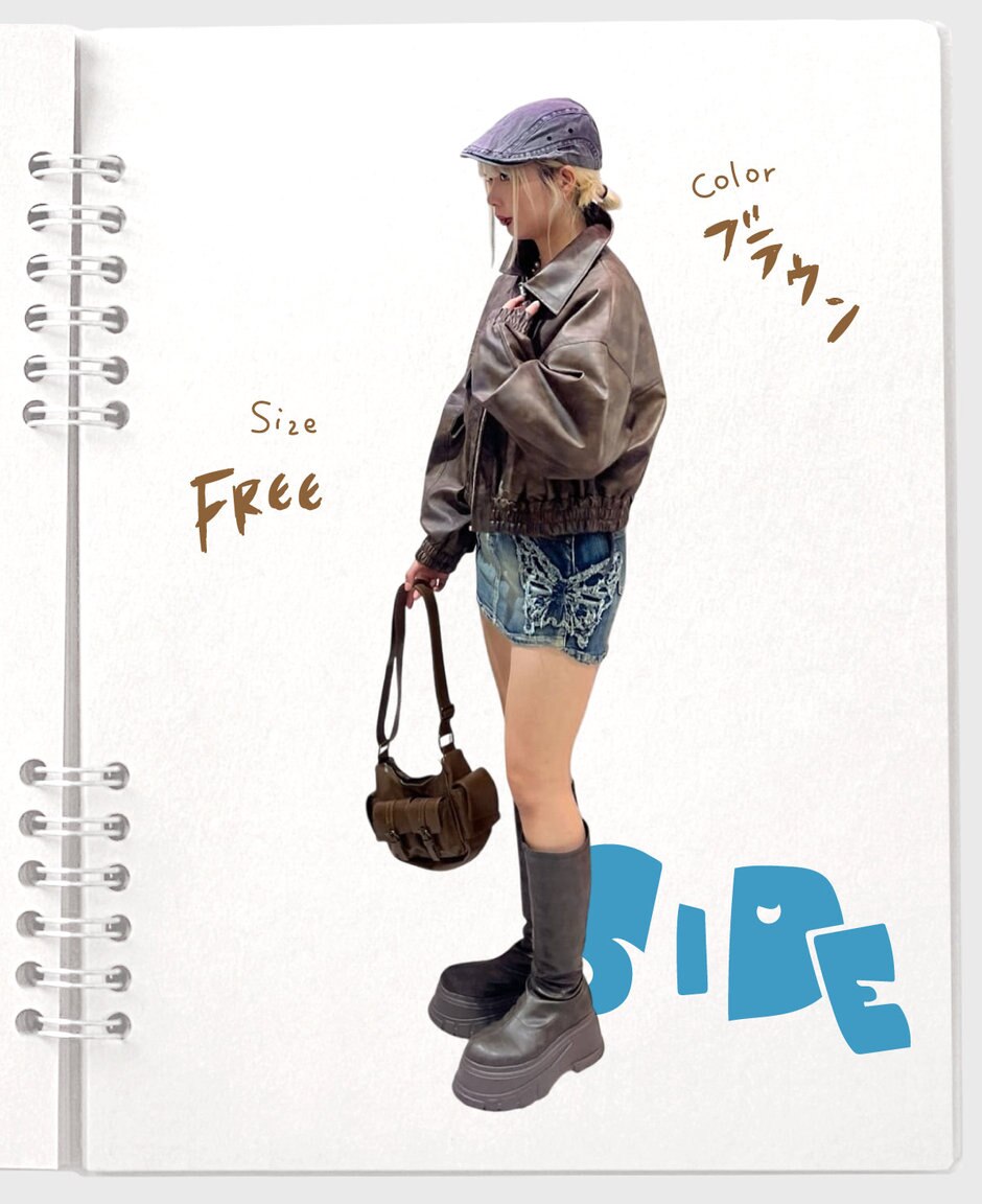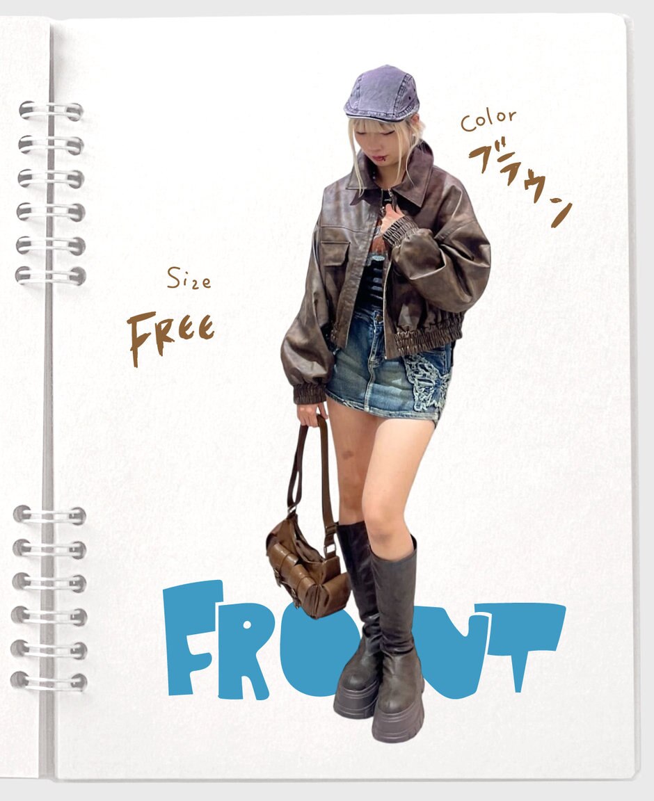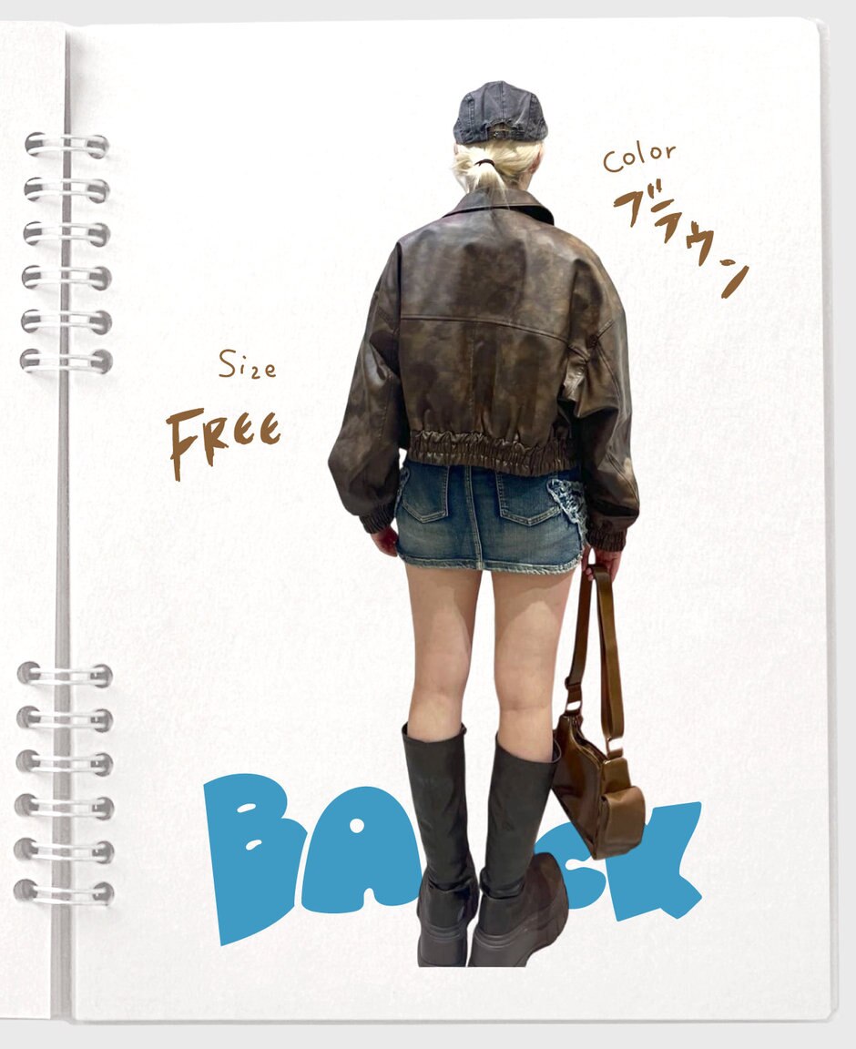 合皮ブルゾンにはバタフライのトップスとミニスカでグランジギャル!