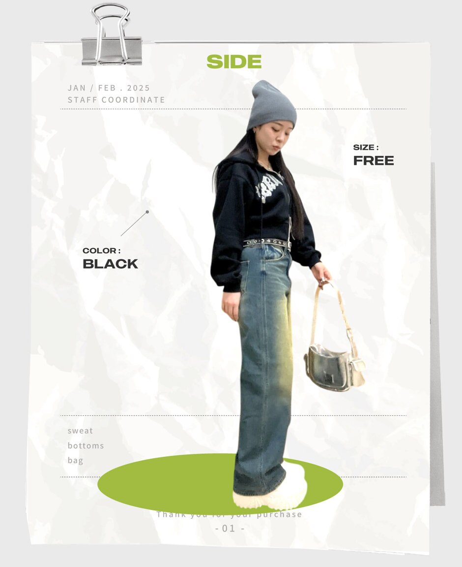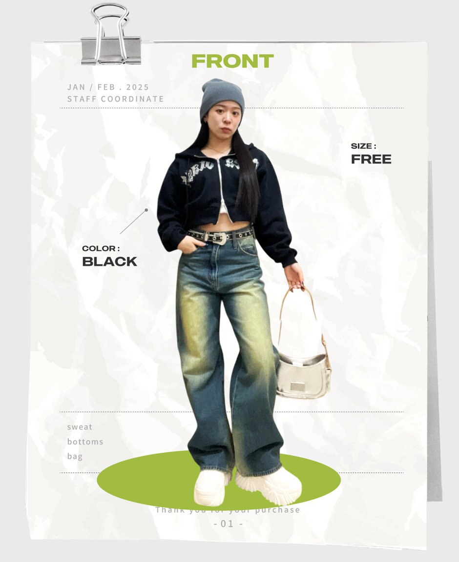 オーバーダイ加工のデニムとラインストーンがY2Kっぽくてカワイイ!